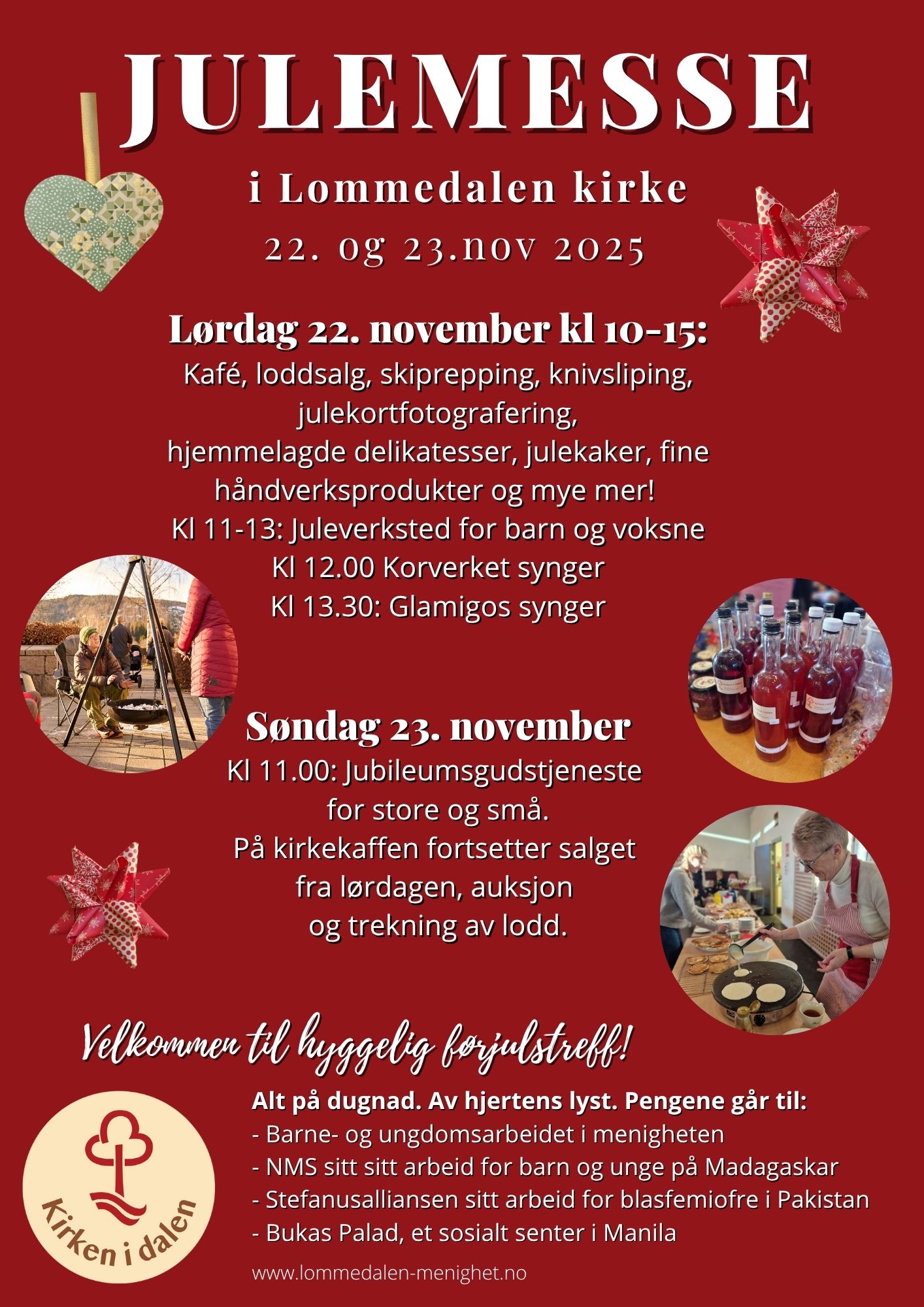 Kom på julemesse i Lommedalen kirke 22.-23.november! Her kan du kjøpe julegaver, få skiene preppet for sesongen, de sløve kjøkkenknivene slipt og julekortbildet knipset av proff fotograf.