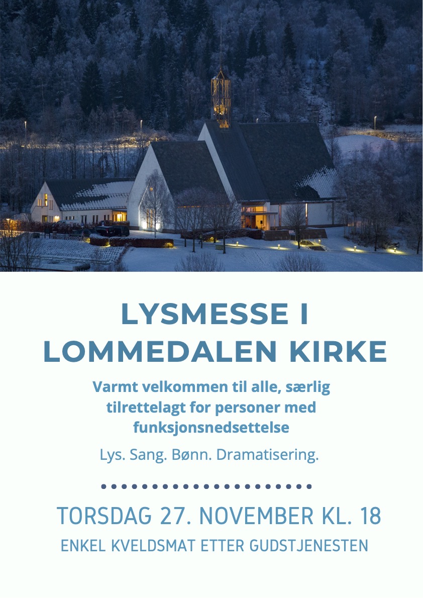 Hvert år i november er det lysmesse i Lommedalen kirke, spesielt tilrettelagt for mennesker med funksjonsvariasjoner. Gudstjenesten passer for alle og anbefales på det varmeste!